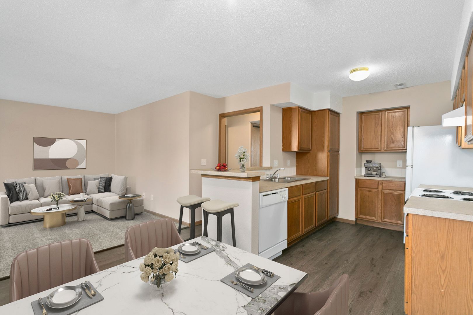 Step into charm and comfort with this beautifully designed 2 bedroom, 1.5 bathroom rustic-style apartment. Featuring vinyl plank flooring throughout, this unit brings the perfect blend of cozy aesthetics and modern functionality. The fully equipped kitchen comes complete with a breakfast bar — ideal for casual dining or entertaining guests.
